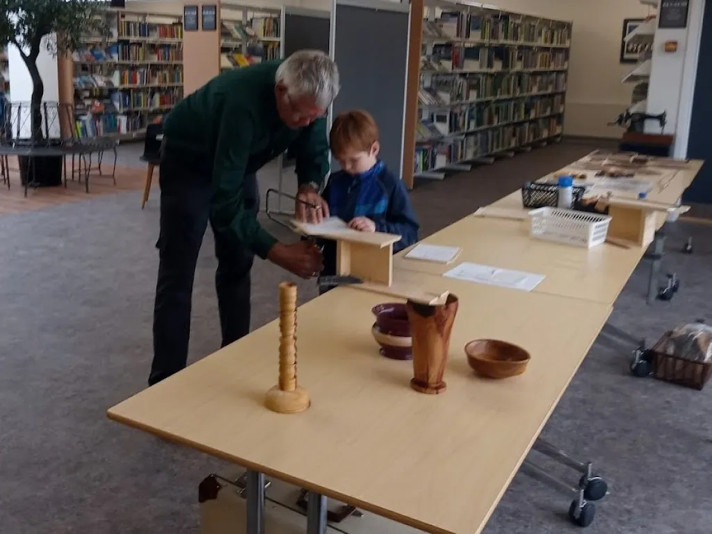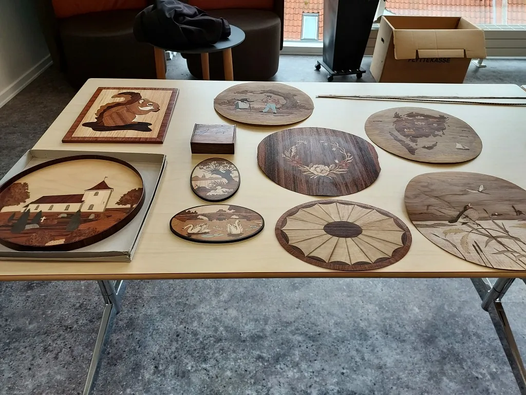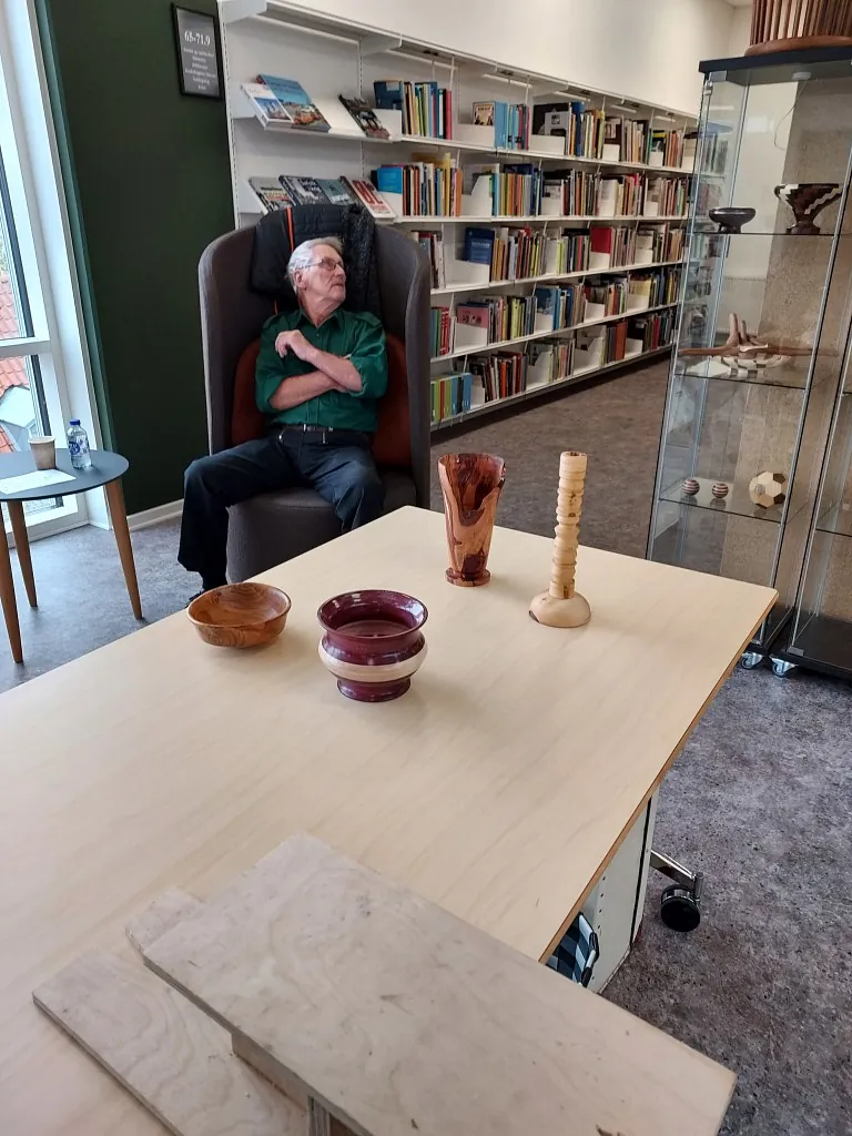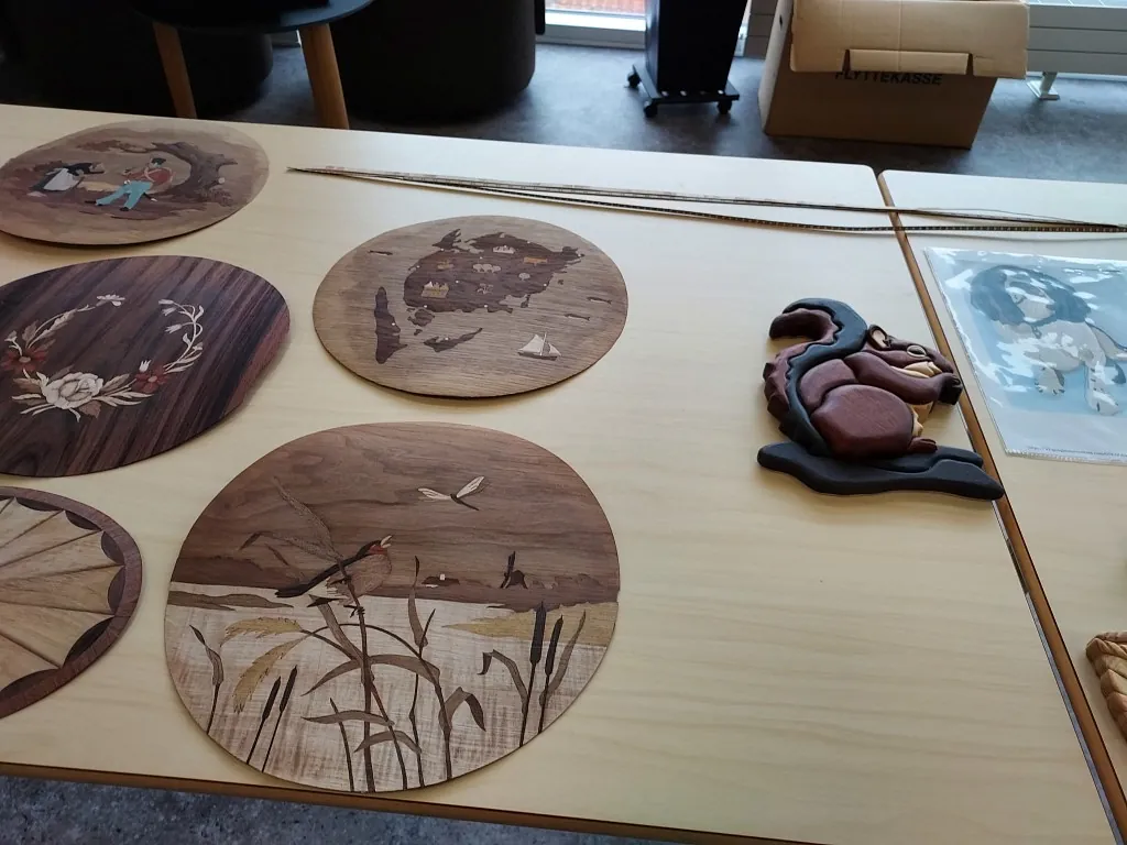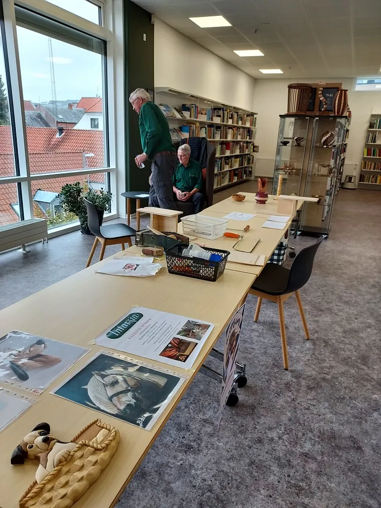 Vi har været på Skive Bibliotek med en udstilling som de kaldte "Sammensurium", hvor vi var der med en stand om intarsia , løvsavsarbejde og nogle drejeting lørdag den 9 oktober. Der var masser af børn der var vilde med at save med løvsav, vi havde lavet nogle små dyrepuslespil de kunne save ud, så det var en succes.